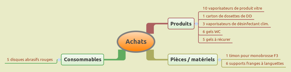 Dans cet exemple j'ai choisi un thème simple : il s'agit de réaliser une liste des achats pour notre petite société de services d'entretien.